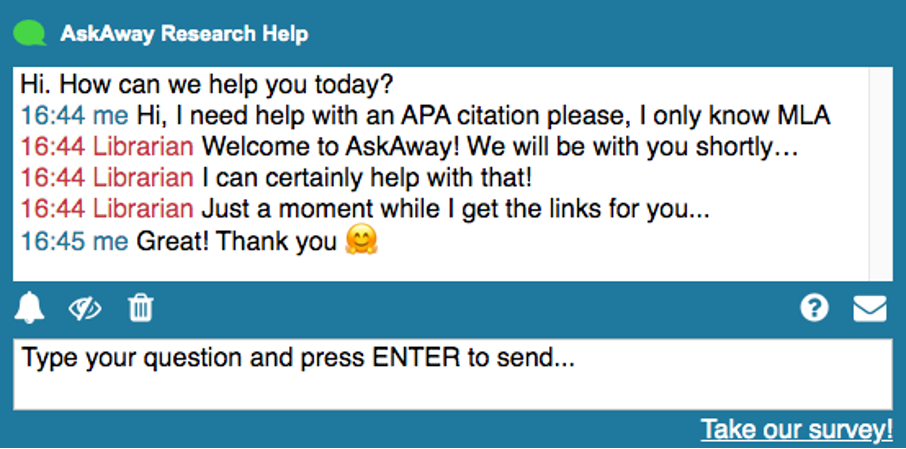- A clear label that identifies the chat box (e.g., AskAway Research Help)