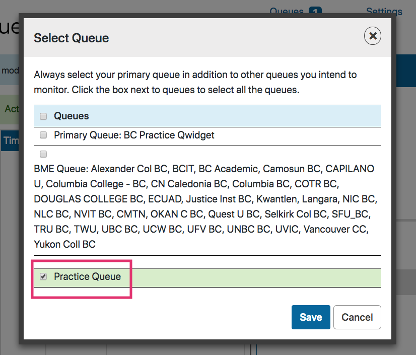 - Deselect your "Primary Queue" and the "BME Queue"